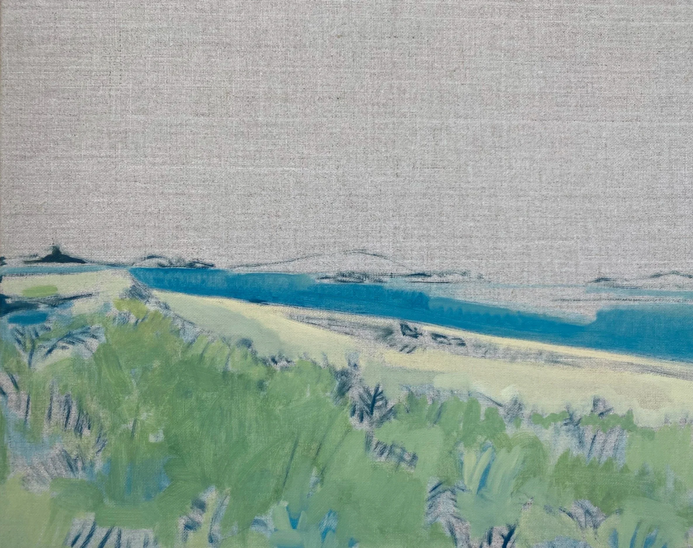 Gestural coastal landscape painted in oils onto linen canvas. The view is looking out from the Old Blockhouse, a ruined 16th century fort on Tresco in the Isles of Scilly.
